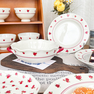玫瑰花园陶瓷餐具套装家用高级感轻奢西餐盘子牛排盘米饭碗碟餐具