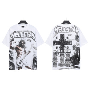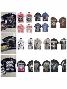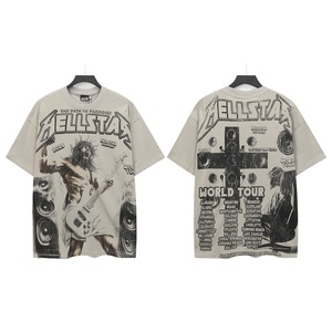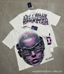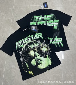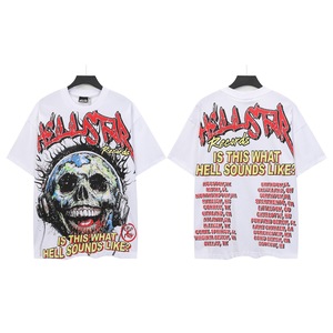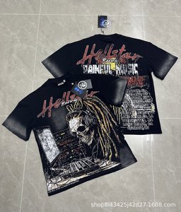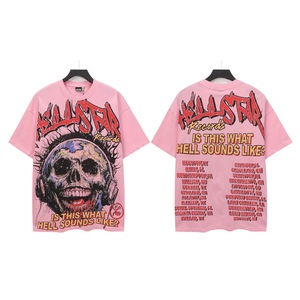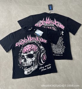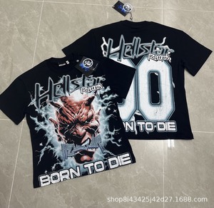 跨境美式2025Hell地狱之星小众潮牌复古印花休闲宽松圆领短袖T恤