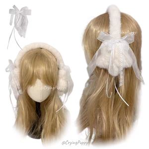 冬季耳罩甜美蕾丝蝴蝶结毛绒耳暖护耳骑车学生防寒耳捂子爱心耳套