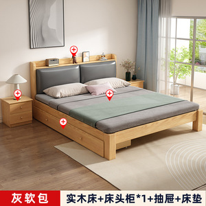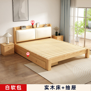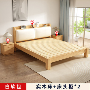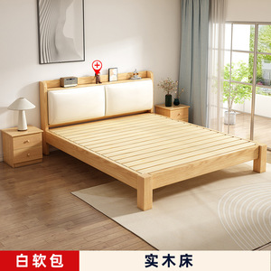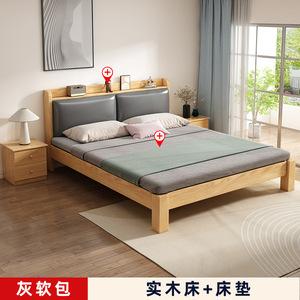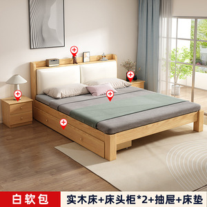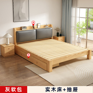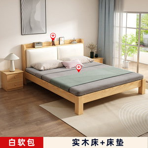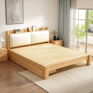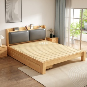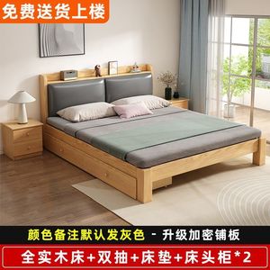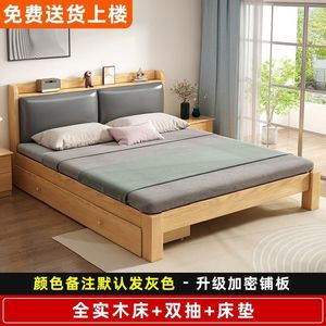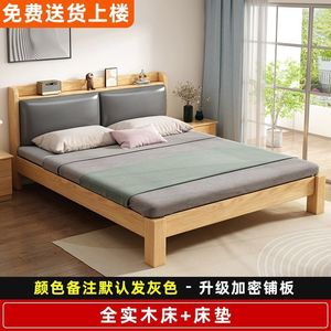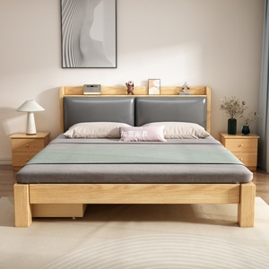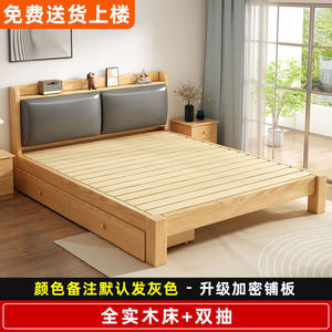 实木床家用北欧1.8米双人床1.5米单人储物床出租房经济型1.2m床架
