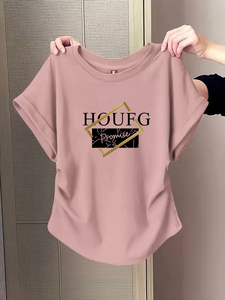 小飞袖褶皱正肩棉短袖t恤女2025新款时尚洋气收腰显瘦上衣夏季