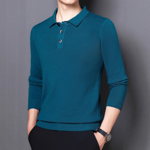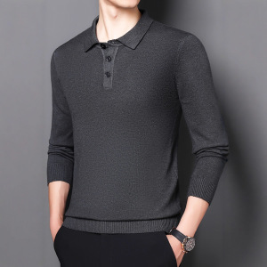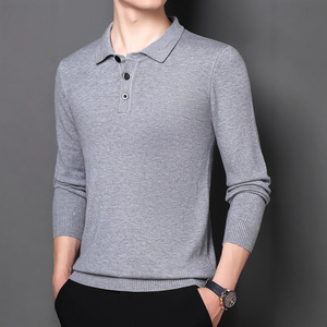 跨境批发男翻领中厚款秋冬季纯色毛衣短袖男士长袖商务休闲男装