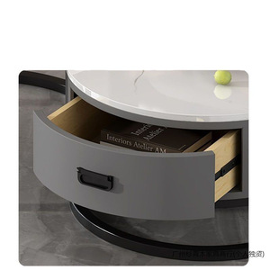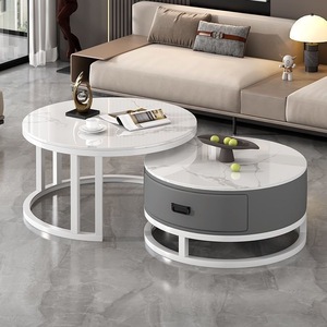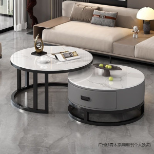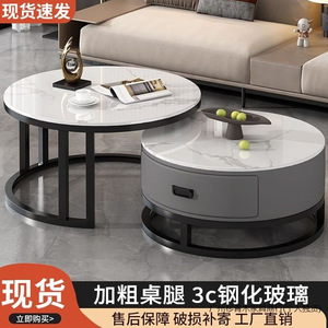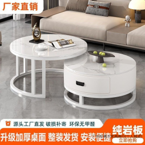 岩板茶几家用客厅新款组合小户型轻奢简约现代实木网红圆形