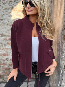 2025亚马逊欧美跨境秋冬新款女装休闲毛呢翻领系绳假口袋西装外套