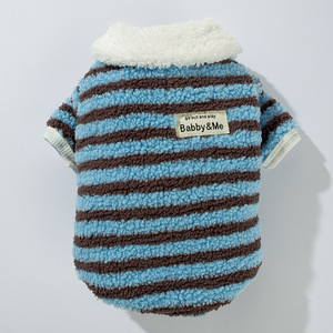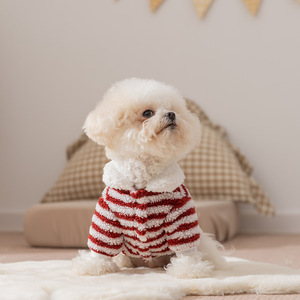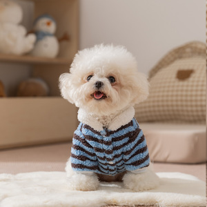 新しいスタイルのポーラーフリースストライプファー襟付きフリース服、中小型犬、ペット、猫、犬、ビションフリーゼ用の二足歩行服