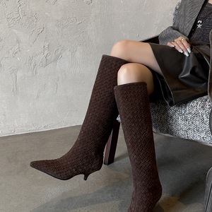 2025新款真皮欧美尖头不过膝长筒靴时尚显瘦细跟气质百搭骑士靴女