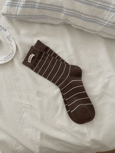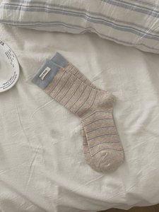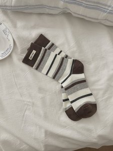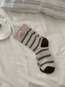 拼接条纹撞色韩系女休闲双罗口miu系简约潮流时尚女中筒堆堆袜