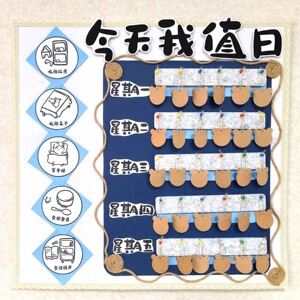 幼儿园蓝色系区域进区卡牌环创材料牛皮挂牌签到墙班级值日生装饰
