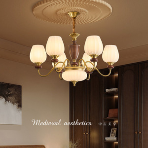 中古风客厅吊灯美式复古胡桃木色实木书房全光谱卧室餐厅吊灯