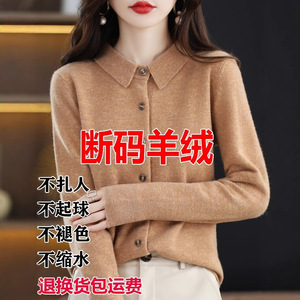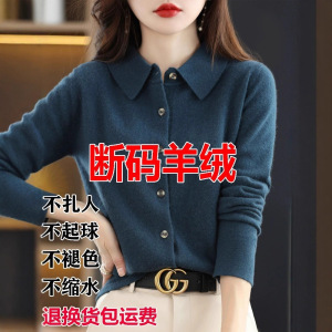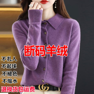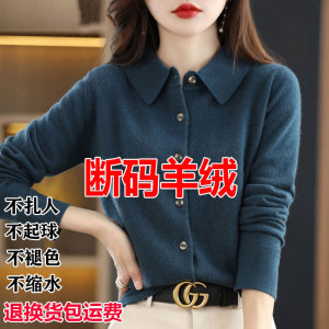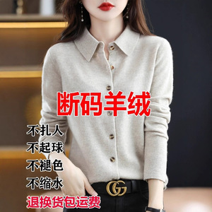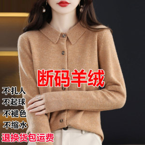 オルドス市オフコードカシミヤカーディガンレディース春秋新作ルーズセータージャケットラペルニットウールセーター