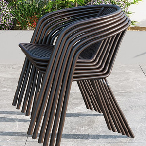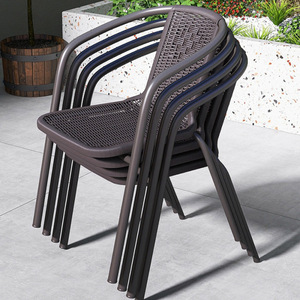 露天奶茶店椅子靠背室外阳台休闲仿藤椅户外单人家用堆叠商用餐椅