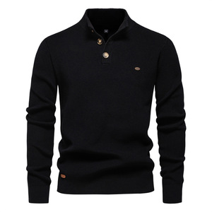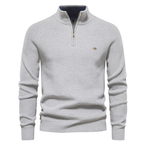秋冬新款男士欧码跨境毛衣男长袖半拉链立领纯色百搭休闲潮流毛衣