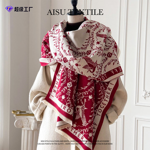 复古印花韩版字母轻奢风保暖大衣披肩加厚护颈围脖气质秋冬御寒女