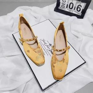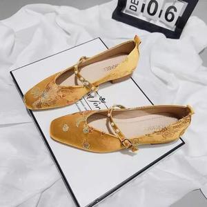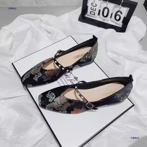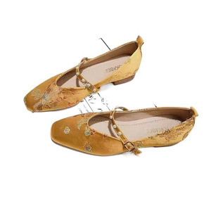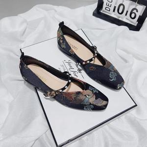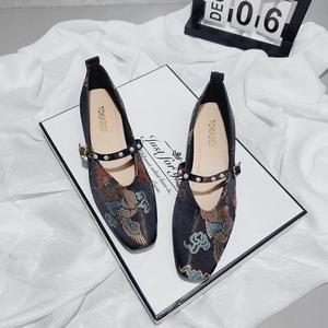 レトロスタイルのドラゴンとフェンの刺繍太いヒールの女性の靴 2025 春と秋の新しい中国風のワンラインバックルメリージェーンローヒールの女性の靴