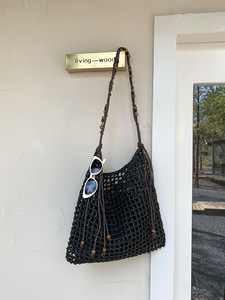 ビーズレトロ脇の下バッグ大容量ショルダートートバッグ海辺の休暇織バッグ怠惰な風わらバッグ