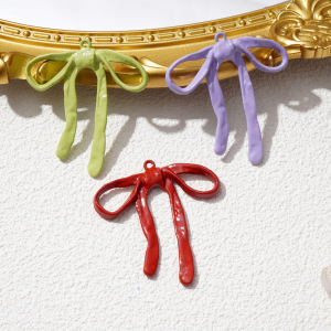 新款合金简约多巴胺糖果色蝴蝶结小吊饰diy饰品配件耳环项链材料