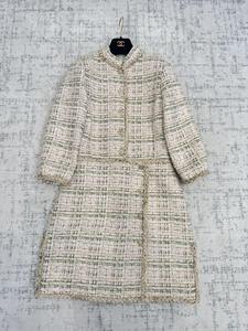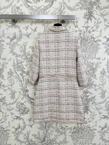 南油25年早秋新款立领法式小香风气质粗花呢捆边长款外套裙女