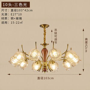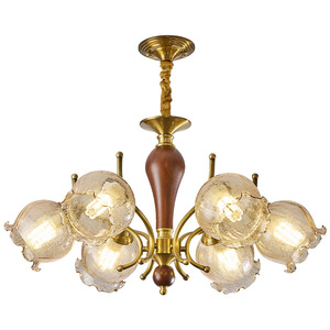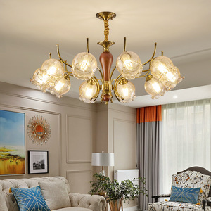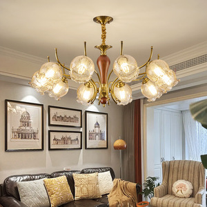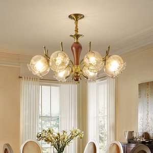 全铜法式中古美式复古客厅吊灯北美黑胡桃木怀旧卧室高级感主吊灯