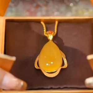 黄色冰种仿蜜蜡水滴单吊坠一个