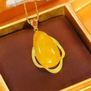 新款水滴仿玛瑙吊坠项链冰黄蜜蜡复古锁骨链高端气质优雅节日礼物