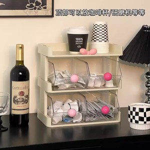 茶包收纳盒子桌面置物架三层茶叶咖啡零食办公室茶水间整理架现货