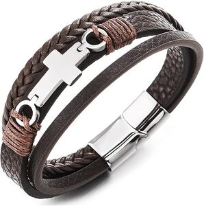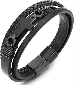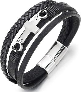 新款跨境复古皮革手工编织合金壁虎配饰个性磁吸扣欧美男士手镯