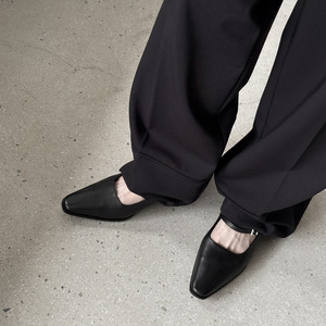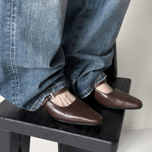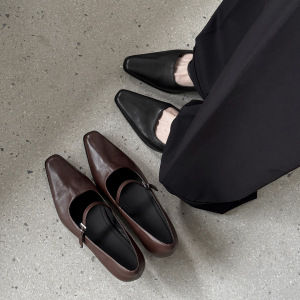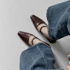 気質は素晴らしい〜第一層牛革スモールスクエアトゥフレンチメリージェーンシューズ2025秋女性用薄型ミディアムヒール本革靴