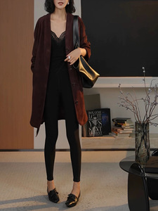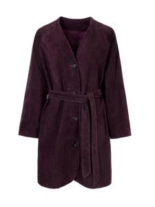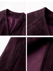 3245-1真皮皮衣秋冬新款山羊皮反绒单排扣系带简约中长款风衣外套
