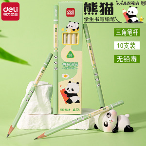 得力XM910熊猫主题三角杆书写铅笔小学生幼儿园HB/2B卡通儿童铅笔