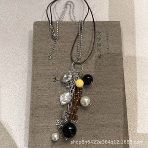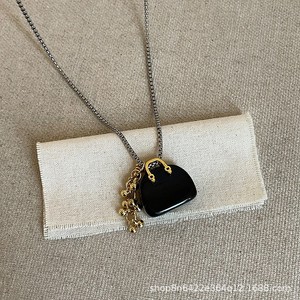 黑曜石串珠包包项链