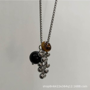 虎眼石钢色葡萄串项链