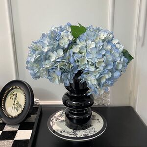 蓝色艾莎绣球3支+黑色玻璃花瓶