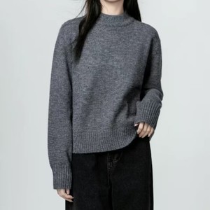 欧美跨境针织衫秋冬新款甜美套头宽松纯色长袖百搭毛衣女外套上衣