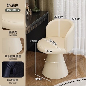 【U悦梳妆凳-奶油白】猫抓皮面料+360°旋转底座