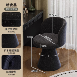 【U悦梳妆凳-暗夜黑】雪尼尔绒布+360°旋转底座