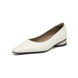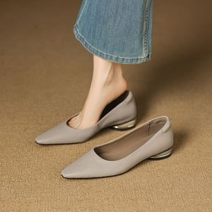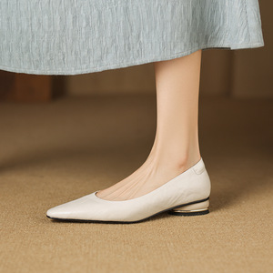 头层羊皮!纯色百搭小皮鞋女2025新款真皮尖头低粗跟一脚蹬单鞋女