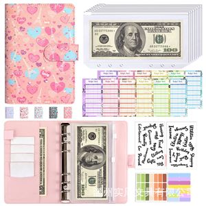 【爱心铁塔】A6手账本外壳-粉色+8个拉链袋+(新)A6现金预算卡(12张)+英文贴纸2张