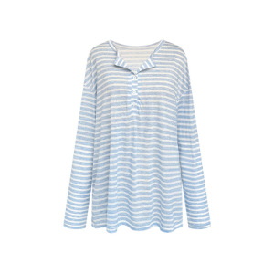 轻薄慵懒撞色条纹长袖T恤女装夏季小众百搭宽松休闲垂感防晒上衣