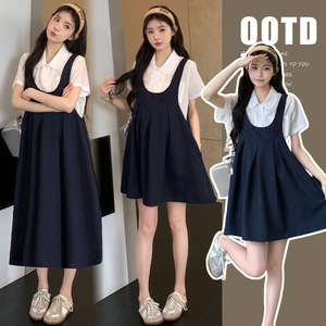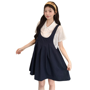 实拍 2025夏季新款短袖衬衣+宽松显瘦背带裙两件套孕妇装