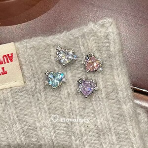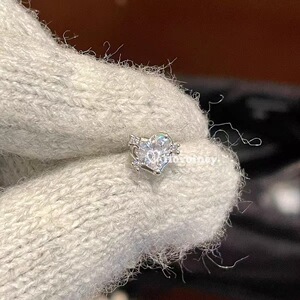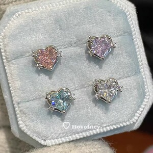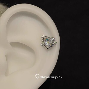 Hovoiney甜酷风爱心锆石耳钉钛钢螺丝拧扣耳骨钉精致百搭耳蜗钉女