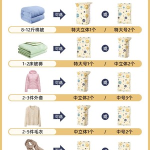 布団や衣類用の真空保存圧縮袋、ダウンジャケット、衣類、旅行用品、掛け布団、空気抜き立体