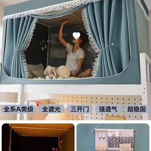 大学生宿舍加厚强遮光床帘蚊帐一体式上铺全包窗帘寝室专用免安装