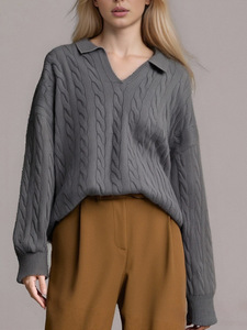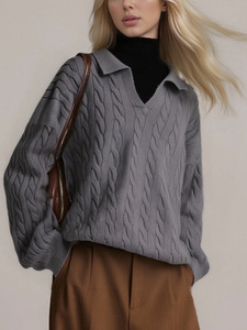 ヨーロッパとアメリカのレトロなポロカラーツイストセーター女性のための秋と冬の新しいルーズ大きいサイズ怠惰なスタイルのセータートップクロスボーダー