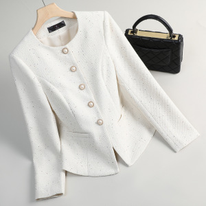 短款小香风外套秋冬女士新款小个子气质白色小西装高级修身女上衣