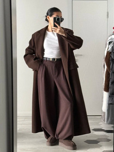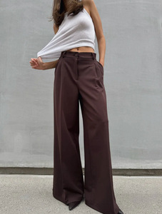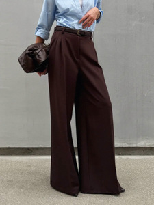 复古穿搭时尚阔腿长裤女装欧美跨境美拉德高腰拖地通勤垂感西装裤