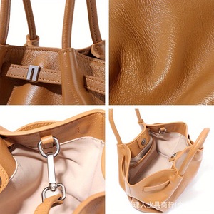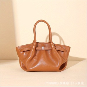 ニッチデザインのプリーツ本革レディースバッグ、シンプルで多用途、高級感のある気質ハンドバッグ、大容量トートバッグ