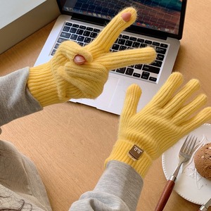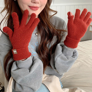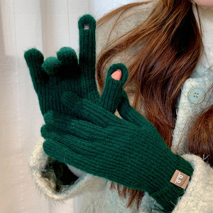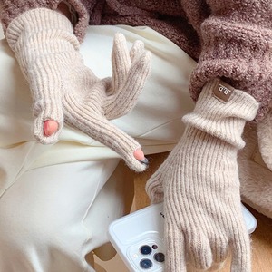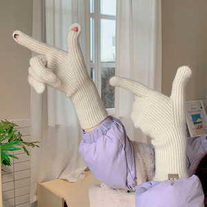 加长款羊绒针织手套女秋冬叠穿保暖毛线可触屏学生露二指五指手套
