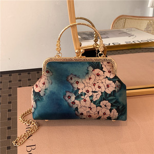 中国风印花旗袍包包女优雅复古夹口手提包经典古风小包手拎妈妈包