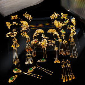 2025新款浅色系秀禾头饰水晶蝴蝶发钗新中式古装汉服晨袍结婚饰品