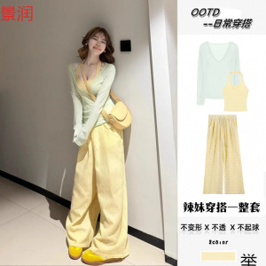 绿色防晒+黄色打底+黄色阔腿裤【三件套】